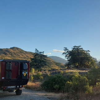 Und dann liegt vor uns im Graben ein Auto auf der Seite. Beim näherkommen erkennen wir Walter. Der war uns mit seinem Toyota und der schönen Kabine schon häufiger begegnet. Zum Glück ist er unverletzt. Jetzt gilt es das Auto irgendwie wieder auf die Räder zu bekommen. Es sind zwar schon etliche Autofahrer angehalten und haben ihre Hilfe angeboten. Mehrere haben versprochen Polizei und Abschleppdienst zu informieren sobald sie Netz haben. Ob sie das gemacht haben und ob dann der Abschlepper sich heute am Sonntagnachmittag auf den 80 km langen Weg hierher macht erscheint uns doch sehr fraglich. Also....selbst ist der Mann. Meine Mithilfe beschränkt sich aufs Kaffee kochen. Die beiden Offroad Erfahrenen überlegen wie sie den Wagen wieder aufstellen und kommen zu dem Schluss das, um den Toyota sicher wieder auf die Räder zu stellen, ein weiteres starkes Fahrzeug benötigt wird. Wir warten, irgendwann wird schon einer vorbei kommen. Um die Aktion vorzubereiten werden Abschleppseile befestigt, Gert macht die Seilwinde startklar. Das Schotterbett wird ausgeschachtet damit der Toyo beim Aufrichten möglichst gerade landet. Nach einer guten Stunde kommt dann Hilfe. Der weiße Defender aus Frankreich. Das ist auch ein ziemlicher Glücksgriff. Jeder der Drei weiß was er zu tun hat und Ruck Zuck, unter dem Beifall einiger Schaulustigen, steht der Toyo wieder aufrecht. Und oh Wunder, außer dem durch den Spiegel eingedrücktem Seitenfenster ist alles heil. Am Schluss kommt dann auch noch die Polizei. Die sind total freundlich und wollen eigentlich nur wissen ob jemand verletzt ist und ob sie einen Abschlepper bestellen sollen. Der war also doch noch nicht informiert..da hätten wir lange warten können. Nach vielen guten Wünschen schleppen wir Walter an einen Übernachtungsplatz am Fluss. Hier schrauben die Beiden und stellen fest ...alles ist Gut ,kein Öl in die Brennkammer gelaufen. Der Motor wird gestartet und springt ohne zu murren an. Chris würde sagen „ Toyo halt“
