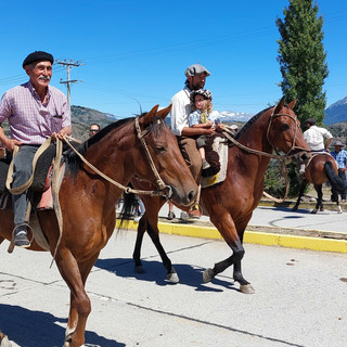 Weiter auf der Ruta 7 geht es durch hohe Berge und bei Villa Cerro Castillo bieten die bizarren, schroffen Felsen des gleichnamigen Berges, einen imposanten Anblick. Das kleine Städtchen gibt sich alle Mühe sich herauszuputzen. Die Häuser sind einfach und klein aber im Gegensatz zu vielen anderen Orten farbig gestrichen und nett dekoriert. Die Gärten davor sind schön gestaltet. Es gibt wenige kleine Lädchen und Cafés. Mehrere Hostels und einfache Cabanas. Von hier starten die Klettertouren auf die Gipfel des Cerro Castillo allerdings ohne uns. Wir machen hier Pause in einem kleinen Café. Es gibt frisch gebackenen Kuchen den wir uns in dem nett angelegten Garten schmecken lassen. Anschließend schlendern wir noch über den Markt. Hier wird neben verschiedenen Handarbeiten selbstgemachte Marmelade und Honig angeboten. Eine Musikgruppe spielt Volksmusik, die Sonne scheint wir fühlen uns sauwohl. Als wir weiter fahren wollen ist die Straße gesperrt für eine Folklorevorführung . Festlich gekleidete Gauchos präsentieren sich mit ihren Pferden, dann zeigen einige Tanzpaare ihr Können.