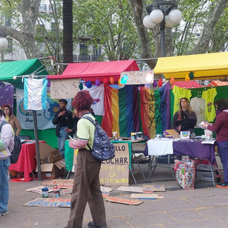 ...ist der September in Uruguay. Schon in Colonia del Sacramento hat ein Umzug mit fröhliche bunt gekleideten jungen Menschen stattgefunden.Ein mini Christopher's Street day. In Montevideo begegnen sie uns wieder. Auf dem Plaza Cagancha gleich hinter dem Unabhängigkeitsplatz ist ein Markt mit Infoständen an denen mehr Anerkennung der sexuellen Vielfalt gefordert wird, mit einem bunten Kunsthandwerkermarkt.
